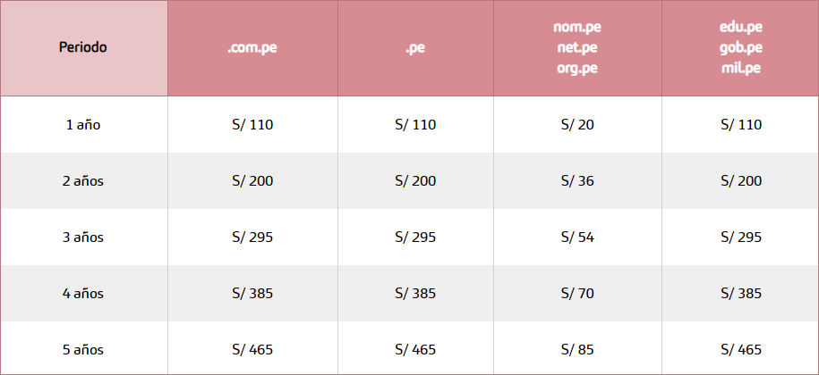 Aquí te comparto las tarifas de www.punto.pe, si deseas reservar tu dominio.